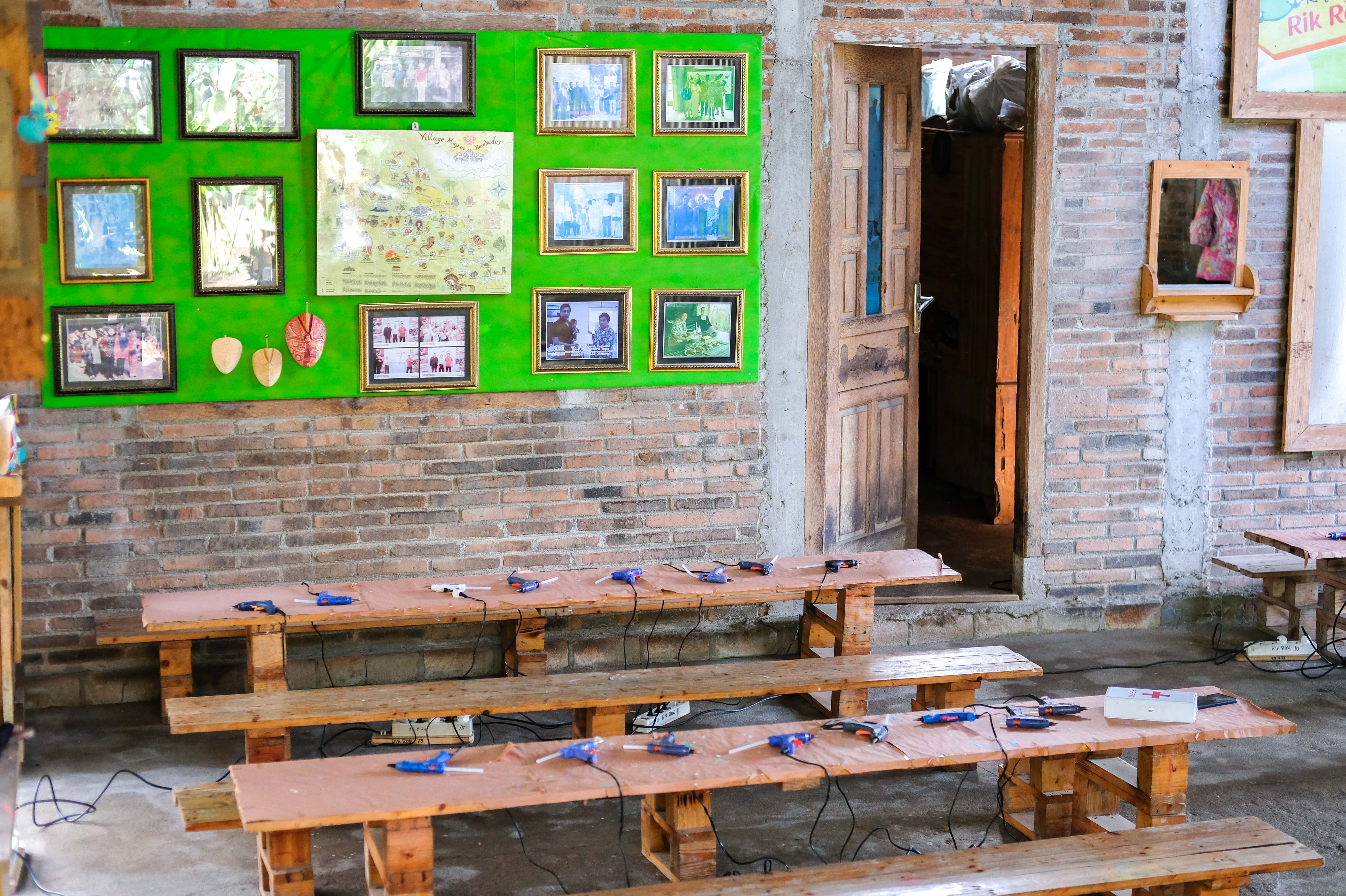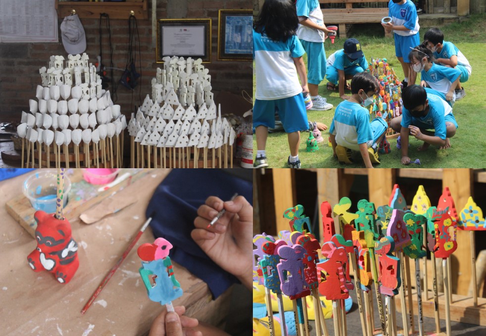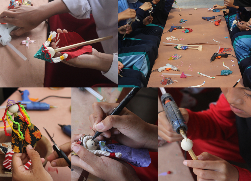 Melukis Pensil Kayu, atasan/ hiasan pensil yang dilukis berbentuk Stupa, Wayang dan Topeng yang terbuat dari limbah kayu. Pensil ini dapat digunakan serta hiasan pensil bisa diganti ke pensil yang lainnya. Estimasi waktu yang dibutuhkan 20- 30 menit.