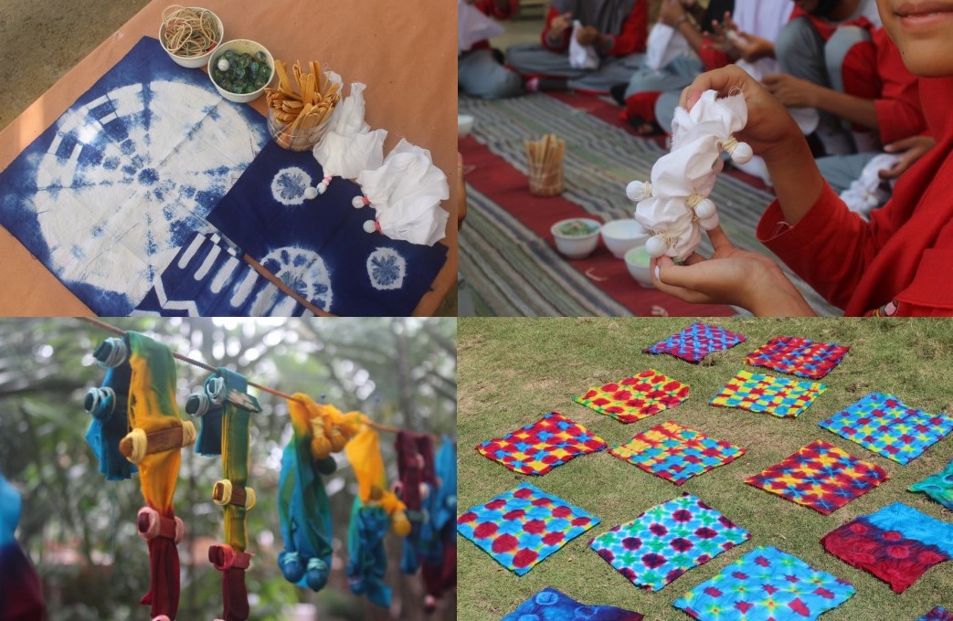 Batik Jumputan, batik yang dibuat dengan cara ikat celup, yaitu diikat dengan karet yang dicelupkan ke dalam warna. Selain itu juga bisa menggunakan kelereng atau stik es krim yang di ikat dan dicelupkan ke berbagai macam warna. Media ini menggunakan kain putih berukuran sapu tangan. Estimasi waktu yang dibutuhkan 20- 30 menit.