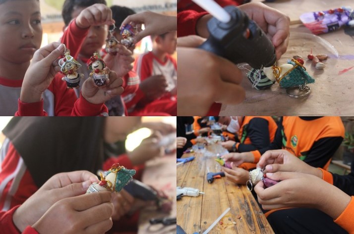 Membuat Gantungan Kunci Kurcaci, belajar membuat gantungan kunci yang berbahan dasar Buah Nyamplung dan biji- bijian seperti Biji Mindi, Biji Soga dan Biji Trembesi. Estimasi waktu yang dibutuhkan 15- 25 menit. Gantungan kunci dihias dengan bijibijian yang tersedia. Gantungan kunci bisa digunakan ditas atau kunci. Untuk mata Digambar menggunakan spidol/ drawingpen.