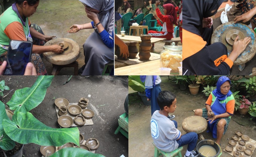 Membuat gerabah dengan menggunakan alat putar. Membuat bentuk gelas, tempat pensil atau tempat lilin menggunakan tanah liat. Estimasi waktu yang dibutuhkan yaitu 20 – 30 menit. Menyesuaikan dengan tingkat kesulitan atau permintaan, bentuk dan ukuran yang sudah disesuaikan untuk pemula sebagai bahan percobaan atau pembelajaran.