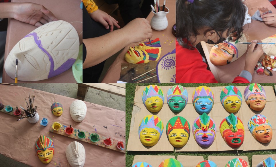 Melukis, membuat gambaran dengan mengunakan kuas dan cat. Media yang digunakan bervariasi mulai dari tempat pensil yang berbahan dasar gerabah, pensil kayu dan topeng yang berbahan dasar kayu. Topeng tersedia dalam 3 ukuran kecil, sedang & besar. Cat yang digunakan cat ramah lingkungan. Estimasi waktu yang dibutuhkan 30-60 menit